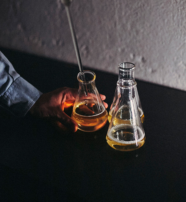 Allí, enraizadas en suelos calcáreos y sometidas a climas extremos, donde la vid crece y madura lentamente, la mano experta del hombre logra crear año tras año verdaderas joyas de altura. Hacen falta dedicación y paciencia para obtener la madurez óptima de esta materia prima. Pero la recompensa vale el esfuerzo: porque solo ellas pueden asegurar la pureza, la fineza y la tensión excepcional de nuestros vinos base.